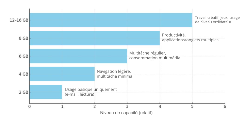Échelle des capacités de RAM des tablettes : ce que chaque niveau permet