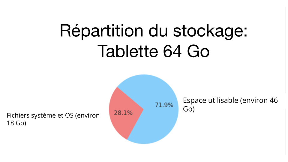 - Les tablettes 64 Go dont la moitié est occupée par le système obligent à décharger les fichiers en permanence.