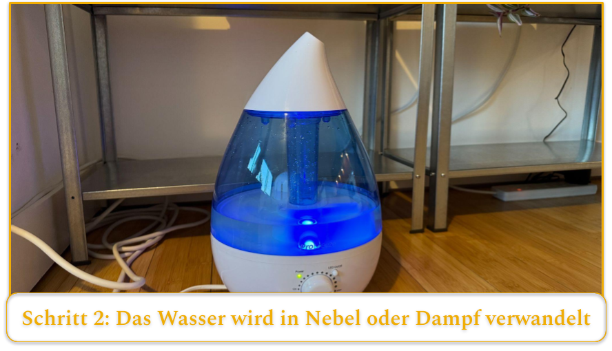 Schritt 2: Der Luftbefeuchter verwandelt Wasser in Nebel oder Dampf