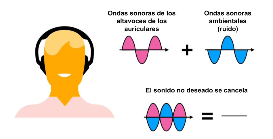 También existen formas pasivas de cancelar el ruido, como almohadillas acolchadas en los auriculares que bloquean físicamente parte del sonido, pero lo que de verdad parece magia es la cancelación activa de ruido o CAR. Es especialmente eficaz para ruidos constantes y de baja frecuencia, como el zumbido de un motor, las conversaciones de oficina o el ruido del aire acondicionado.