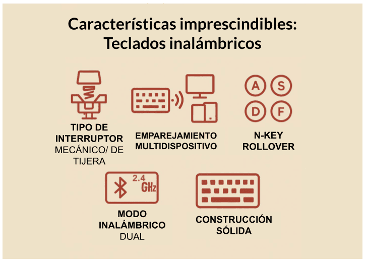 Al elegir un teclado inalámbrico, prioriza los aspectos esenciales que afectan al rendimiento diario y la durabilidad: