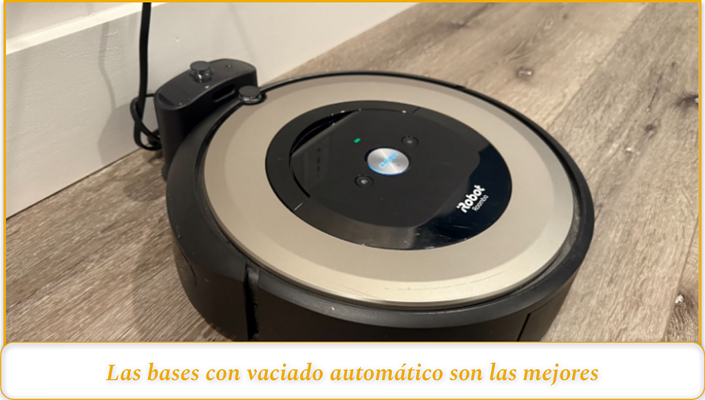 La base hace algo más que cargar el robot. Las bases más sencillas solo recargan las baterías, pero las bases con autovaciado incluyen motores de vacío secundarios que aspiran los residuos del robot y los depositan en una bolsa más grande. Después de probar los dos tipos, no pienso volver nunca a los modelos sin base con vaciado automático: valen cada céntimo que cuestan, sobre todo si tienes mascotas. Los modelos más nuevos que he probado incluso limpian los rodillos del cepillo y lavan las almohadillas de la mopa automáticamente, con lo que te resuelve el mayor engorro del mantenimiento.