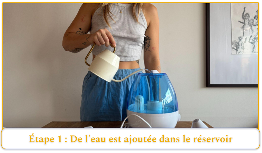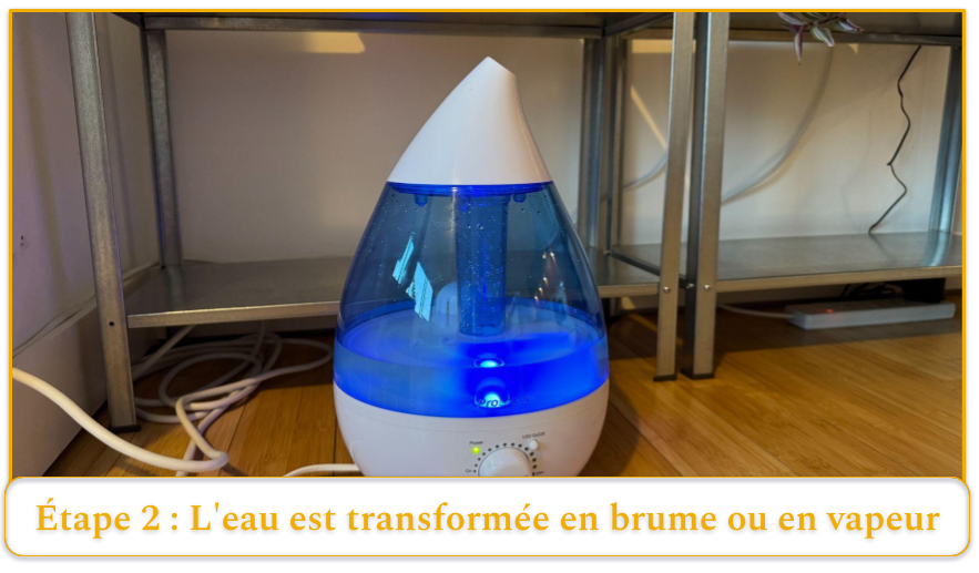 Étape 2 : L’humidificateur transforme l’eau en brume ou en vapeur