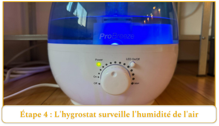 Étape 4 : Un humidistat surveille les niveaux d’humidité de l’air (si disponible)