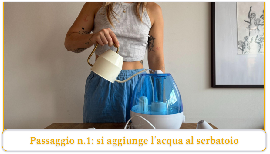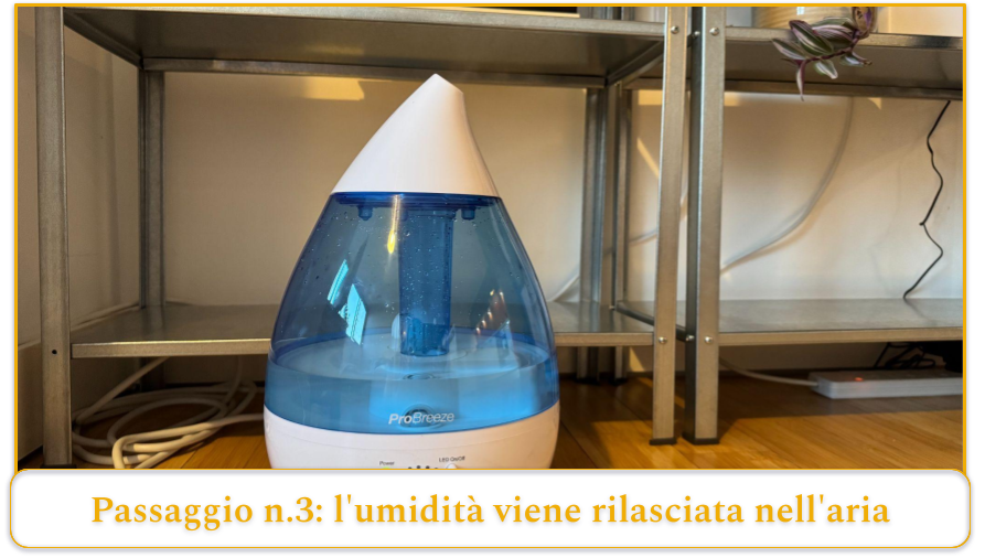 Passaggio n.2: l’umidificatore converte l’acqua in nebbiolina o vapore