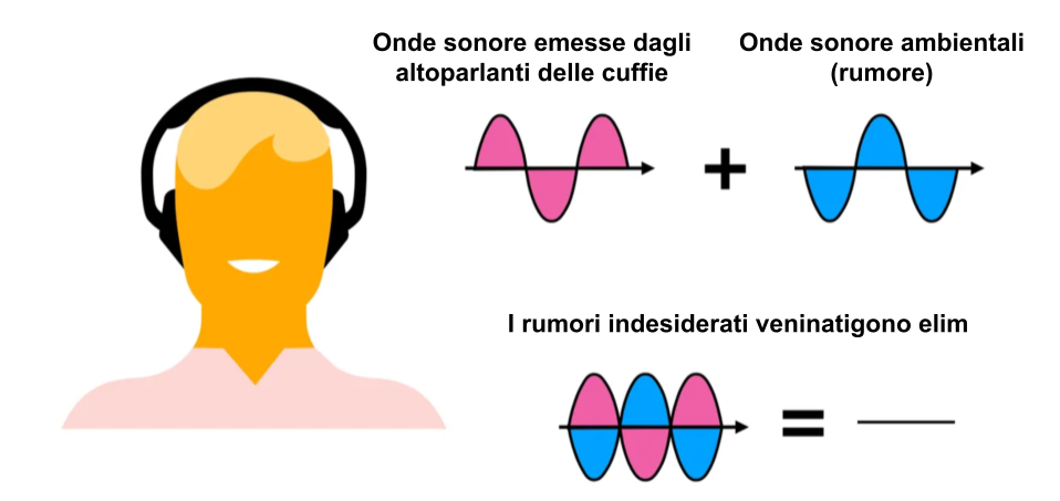 - Il sistema genera un’onda sonora invertita per annullarli;