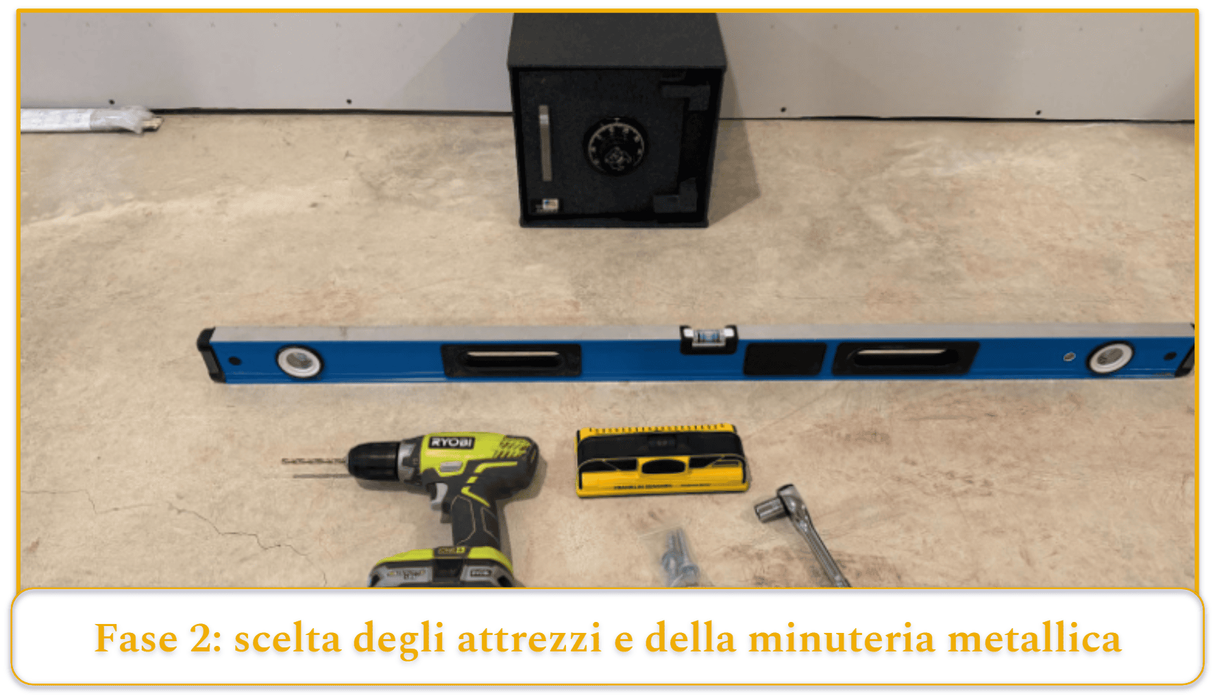 - Livella (si consiglia una lunghezza di 1,2 m per le casseforti più grandi)