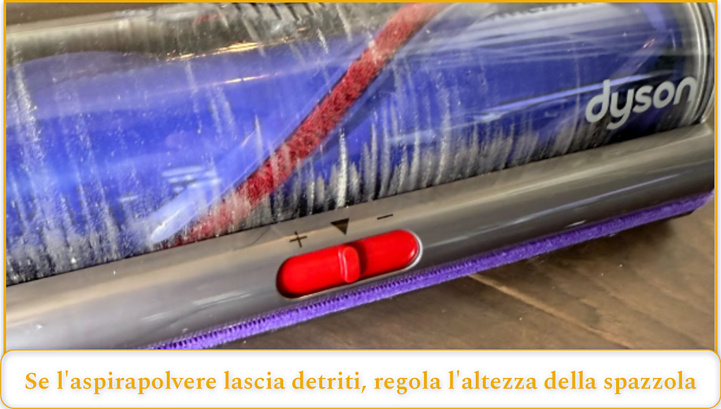 L’aspirapolvere spinge lo sporco invece di raccoglierlo? È necessario regolare l’altezza della spazzola. La leva dell’altezza si adatta allo spessore di moquette e tappeti; se è troppo alta, l’aspirazione diminuisce, se è troppo bassa, blocca il flusso d’aria. Inizia dall’impostazione più alta, quindi diminuisci fino al punto ottimale. I modelli senza sacco di raccolta presentano questo problema più frequentemente di quelli che invece lo montano.