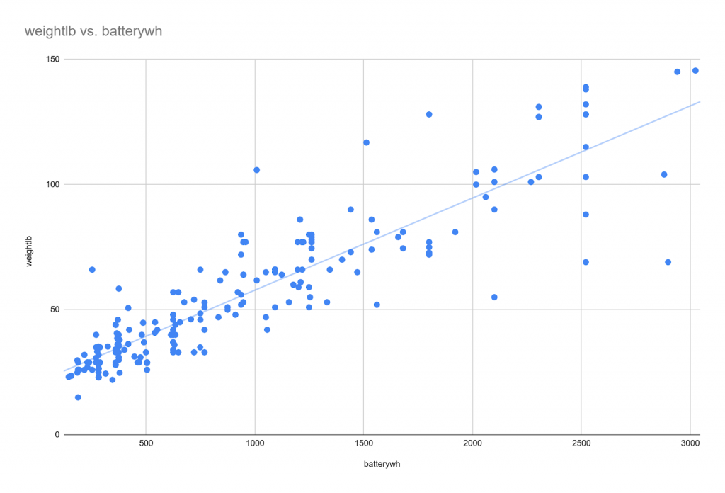 Come illustrato nel grafico, i monopattini con batterie più grandi tendono a pesare di più. Più batterie significa più peso: è il compromesso che si deve affrontare quando si cerca di ottenere un’autonomia superiore da un monopattino leggero.