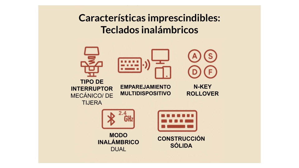 Al elegir un teclado inalámbrico, prioriza los aspectos esenciales que afectan al rendimiento diario y la durabilidad: