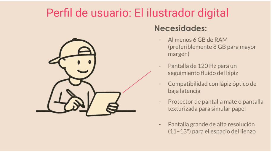 Tablets recomendadas para ilustradores digitales: Apple iPad Pro de 12,9″ (M2), Samsung Galaxy Tab S9 Ultra, XP-Pen Magic Drawing Pad